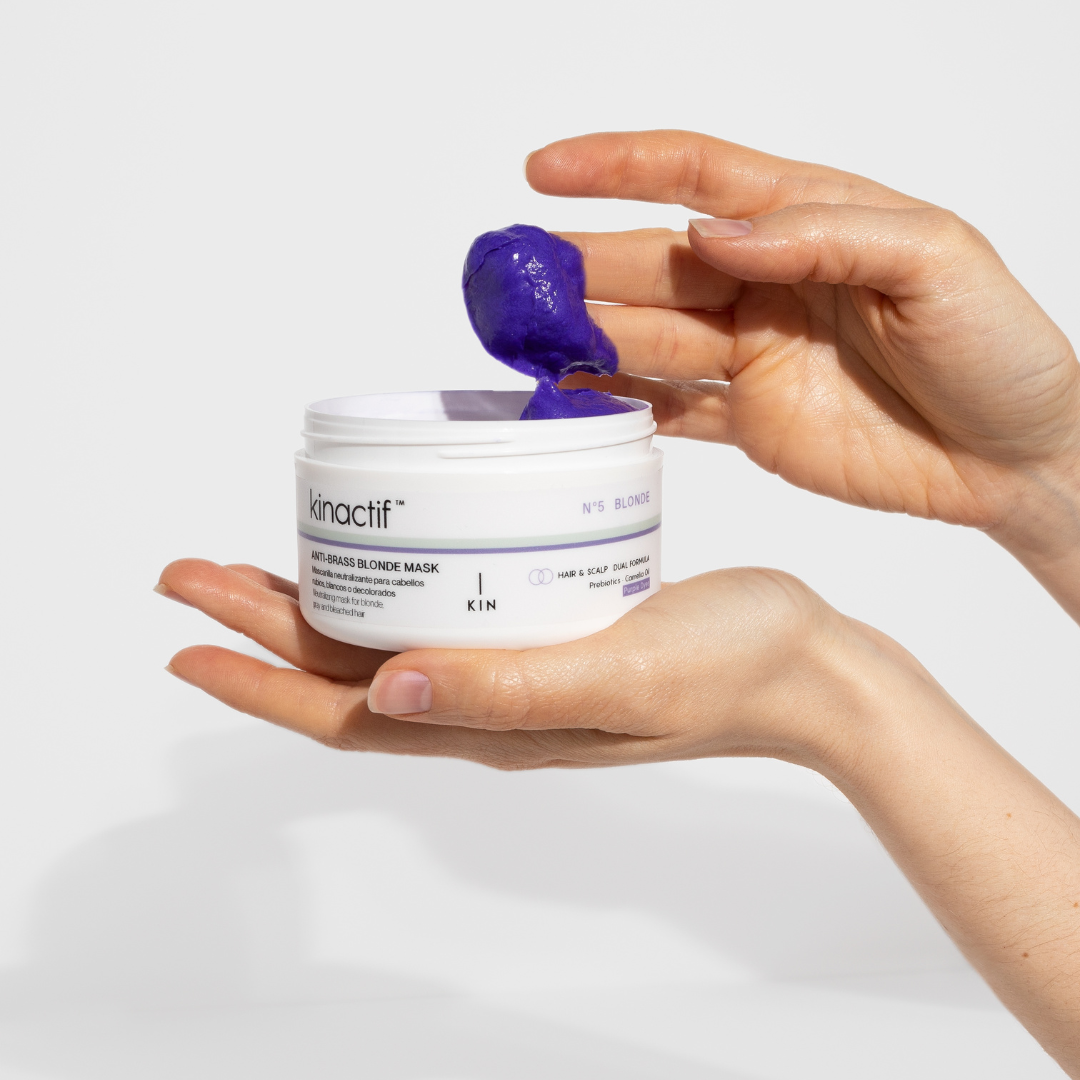 El shampoo matiza los tonos amarillos no deseados mientras limpia suavemente, y la mascarilla nutre y sella la fibra para un rubio más sano.