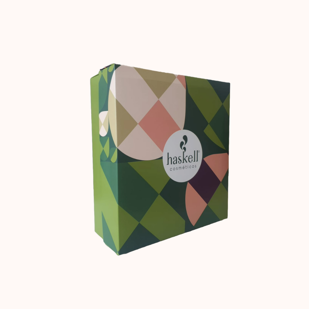 Incluye shampoo, acondicionador, leave-in y mascarilla de la línea Liso com Força de Haskell, formulada con extractos vegetales que reducen el volumen, suavizan la fibra y entregan brillo espejo.